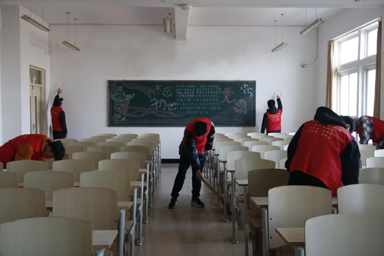 志愿者们对学院走廊、教室、卫生间、宿舍外围区域等进行了一次彻底清扫。他们发扬不怕苦、不怕脏、不怕累的精神,身着红色马甲,手拿扫帚、钳子、垃圾袋,认真清扫路面的树叶、杂物,清理墙角的杂草,拾捡校园绿化带内白色垃圾,清理卫生死角,活动吸引了多名路过学生参与其中。