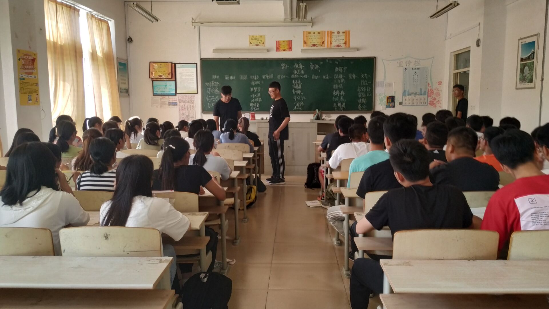 此次团课在各班团支书的负责下有序进行,同学们都能够认真积极的参加活动。各班团支书精心策划,认真搜集资料做准备,团课时间,各班把搜集的资料利用故事展示,媒体展示等多种形式召开团课主题活动,踊跃参与,爱国主义情感根植于全体师生心中。以习近平新时代中国特色社会主义思想为指引,深入学习贯彻党的十九大精神,紧紧围绕庆祝中华人民共和国成立70周年这一主题,培育和践行社会主义核心价值观,倡导广大教师敬业爱生,立德树人,争做“四有”好教师;引导学生爱学习、爱劳动、爱祖国,切实增强社会责任感、创新精神、实践能力,争做新时代好公民。