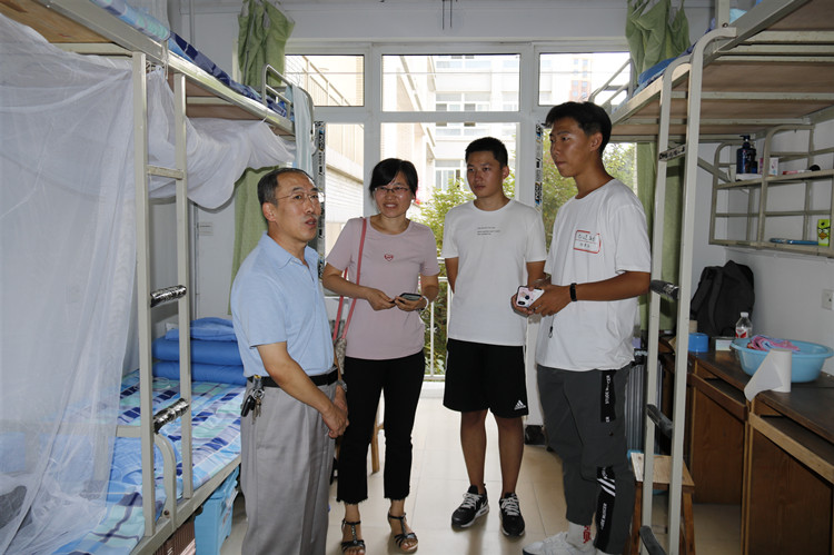 9月1日上午,机电工程系曲军、王强以及专业教师、班主任、辅导员,来到新生宿舍,询问学生住宿及生活情况,了解学生困难,用实际行动给报到新生和家长送来了温暖。