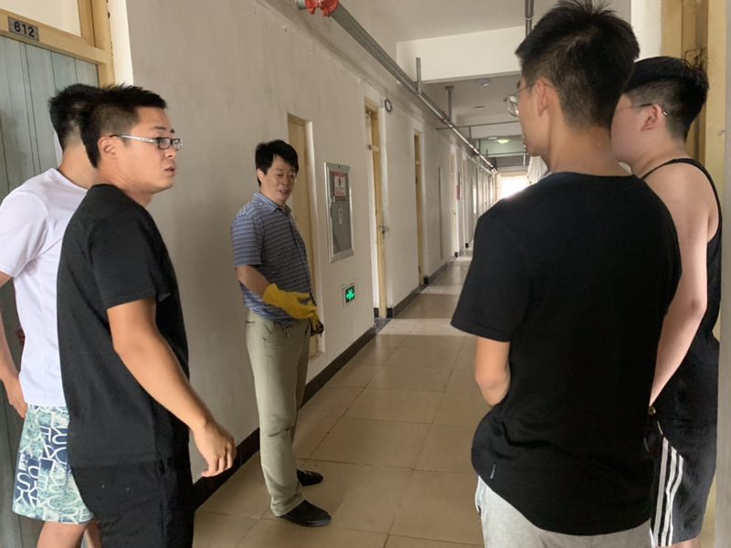临近期末,为保证我系学生宿舍安全,紧抓宿舍卫生不放松,保持好商务外语系文明公寓的形象。六月二十五日下午三点,在我系王书记带头下,部分导员与各班主任一同进行商务宿舍清理活动,并针对宿舍卫生情况与宿舍安全问题进行关切。