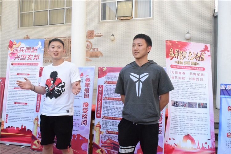 活动伊始,会计系的两位退伍学生王家龙同学和张镱瀛同学,讲解了征兵的相关优惠政策,并结合自己在部队的亲身经历,充分调动同学们报名应征的积极性。同时对同学们感兴趣检工作进行了详细的解答。最后,同学们有序地排队在横幅上签字。18审计二班张旭同学表示:“很感谢两位学长能跟我们分享自己的军营生活,为我们解答疑惑,我们作为青少年,就应该为祖国发展做贡献,增强国家队伍力量,同时参军也是自己人生中的宝贵财富,我想大家肯定都会积极参与。”