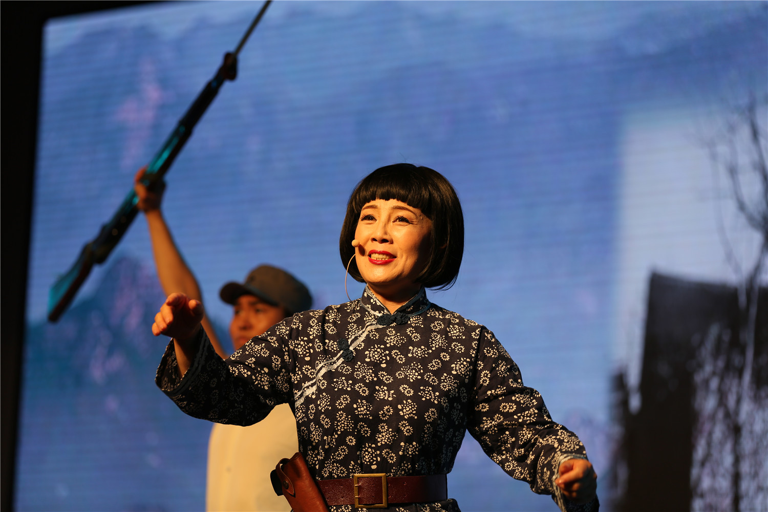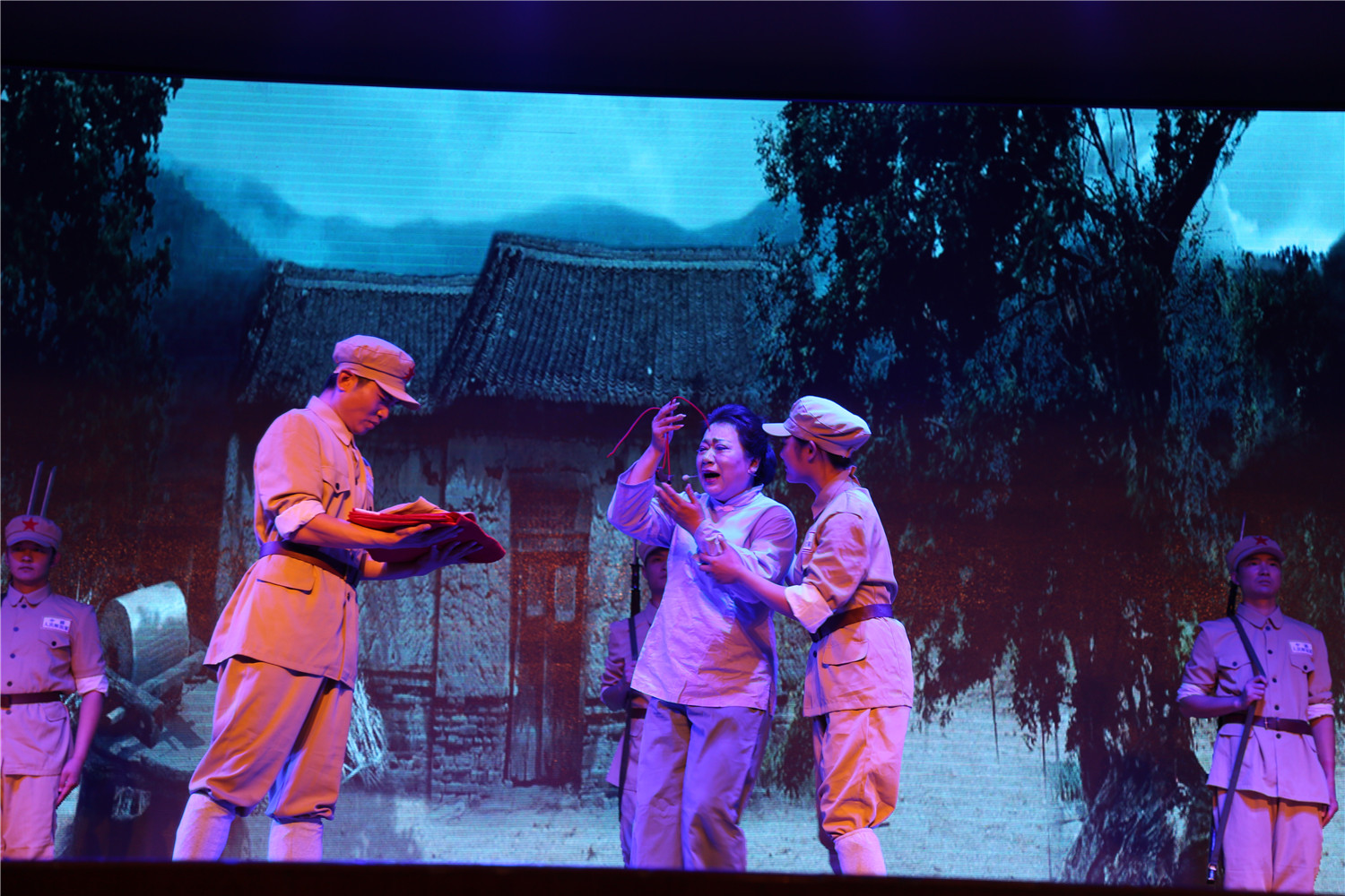 “胶东,这片温暖的土地。安宁,被列强打破;生活,被敌人践踏;家园,被无情屠戮。尸骸遍地,疮痍满目,人民流离,祸起四方,我辈当如何!”演出在有志青年深知国难当头悲愤交加的慨叹中拉开序幕,瞬间把现场观众带入了那个山河破碎的动荡年代,“山巍峨,海磅礴,胶东唱响英雄歌。天高远,地宽广,胶东红旗永飘扬……”嘹亮高亢的歌声照暖每个人的心,大家又仿佛进入了胶东地区如火如荼闹革命的战场中,风吹麦浪,胶东子弟兵昂首挺胸纵情歌唱,在广大的平原上建立了抗日的根据地。西从胶济线,东到黄海边,八百万抗日民众利用游击战将敌人打得胆寒。
