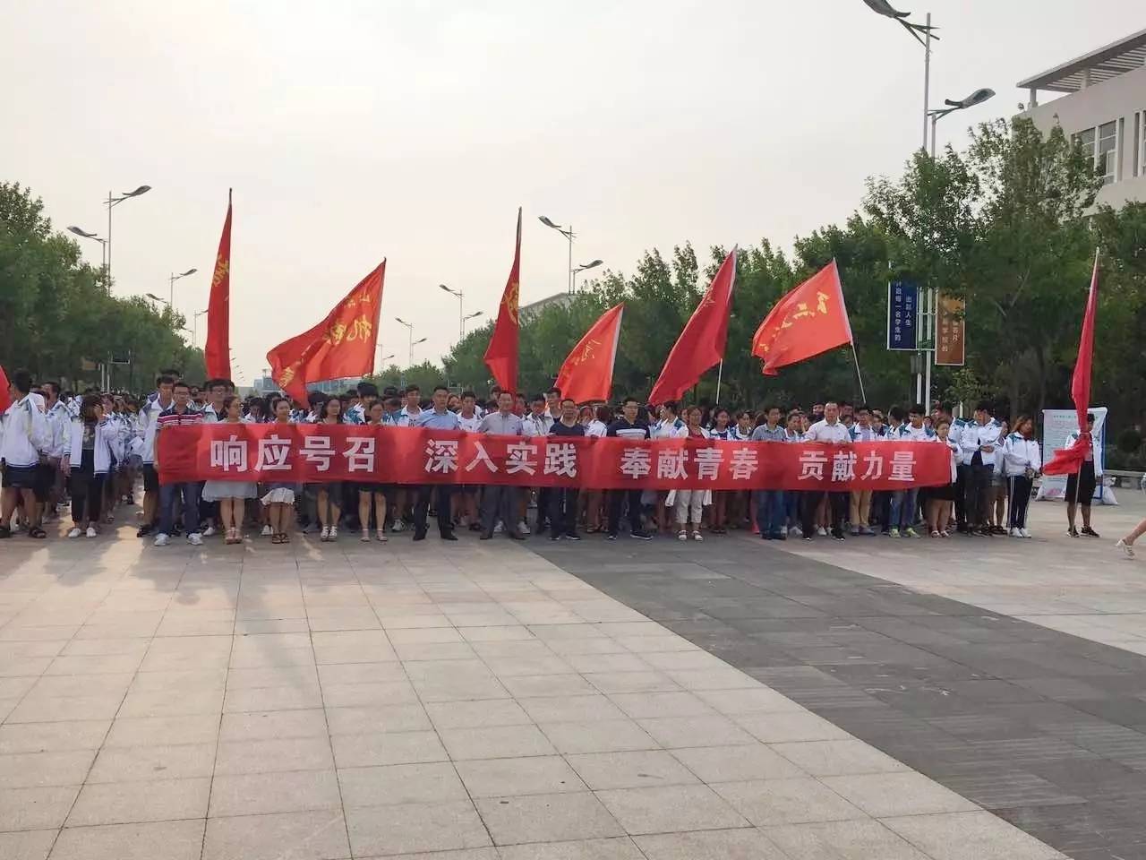 为全面贯彻党的十八大和十八届三中、四中、五中、六中全会精神,以邓小平理论、“三个代表”重要思想、科学发展观为指导,深入学习宣传贯彻习近平总书记系列重要讲话精神,紧紧围绕协调推进“五位一体”总体布局和“四个全面”战略布局,围绕树立创新、协调、绿色、开放、共享的发展理念。我校今年继续开展2017年暑期“三下乡”社会实践活动,于6月30日下午,在中心大道举行出征仪式。烟台大学生网、校团委、思政部、各系团总支书记、全院各系部“三下乡”社会实践31支社会实践队伍,1400余名同学,参加了此次出征仪式。