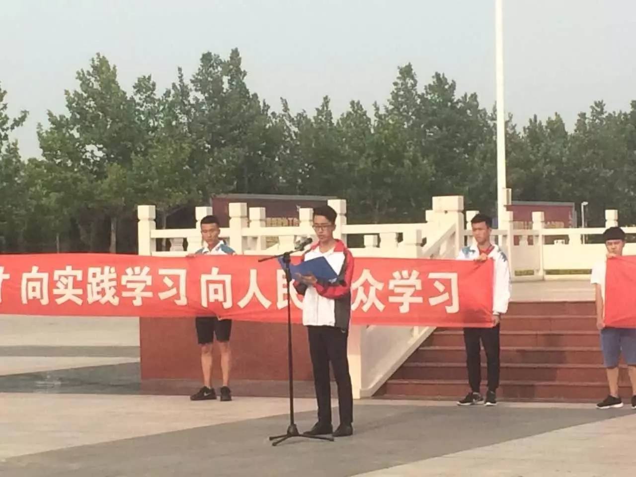 社会实践学生代表谢子凡表示,出征后,我校学子一定会谨遵老师指导,团结协作,善始善终,实践中展现我院学子积极向上的精神风貌,培养学生回报社会的精神。最后,学生干部代表付俊卜宣读了安全保证书。