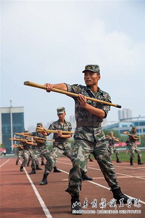 随后,军训分列式和各项军事科目表演开始。汇报过程连贯有序,现场气氛庄严肃穆。分列式中,同学们迈着整齐的步伐,步伐铿锵,口号嘹亮,健步走过主席台,接受部队首长和学校领导的检阅;军事科目表演中,进行了单个军人停止间队列动作、班队列动作、叠军被、军歌拉唱等科目的展示,同学们出色的表现赢得了全场的阵阵掌声,充分展现了9天来的训练成果,展示了我校学子积极进取、昂扬向上的精神风貌。汇报演出中,教官方队队列表演、刺杀操表演,勇敢顽强的军人作风更是让每一名在场的同学肃然起敬,斗志昂扬!最后,军训团团长李海千宣读《关于表彰军训标兵单位、标兵个人的决定》并由教官颁奖。