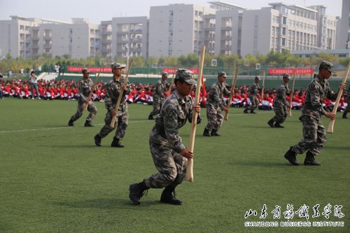 在军事科目汇报表演中,受训方队分别表演了会操、刺杀操、军歌演唱、叠被子比赛等项目,展示出了新一届商务学子朝气蓬勃的精神风貌和强烈的集体荣誉感。