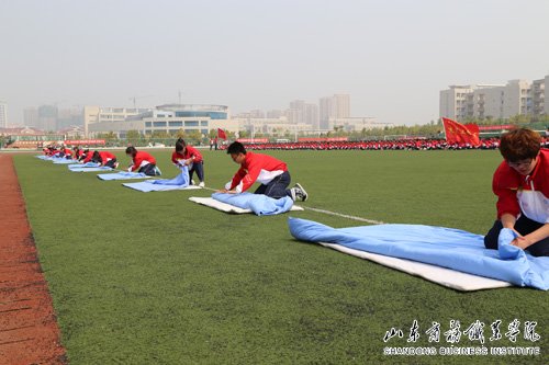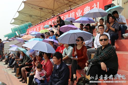 9月30日上午10点,我院2013级新生军训结业典礼在体育场隆重举行。学院院长耿建敏,副院长窦中华、王永宝、刘艳蔚,烟台市莱山区武装部部长林杰,承训部队首长李海千、韩春民等出席了本次典礼,100余名新生家长应邀参加了典礼并在观礼台就坐。典礼由副院长刘艳蔚主持。