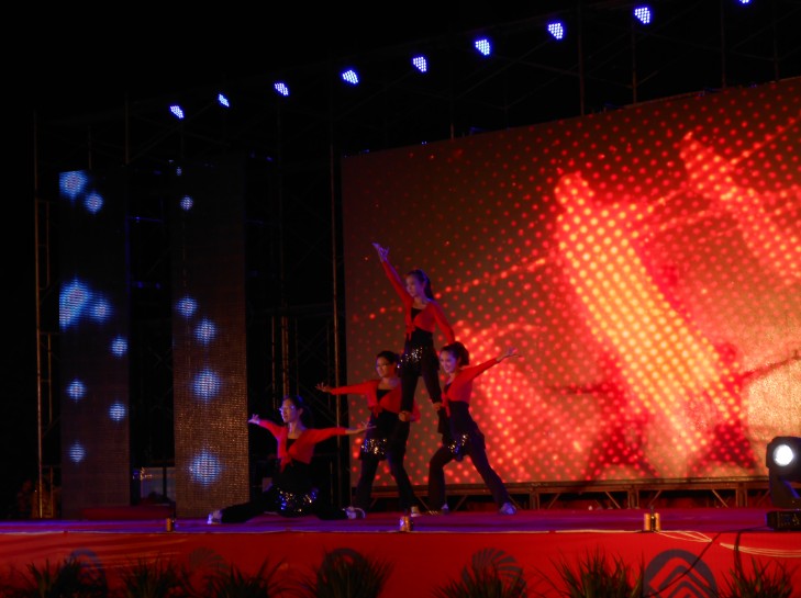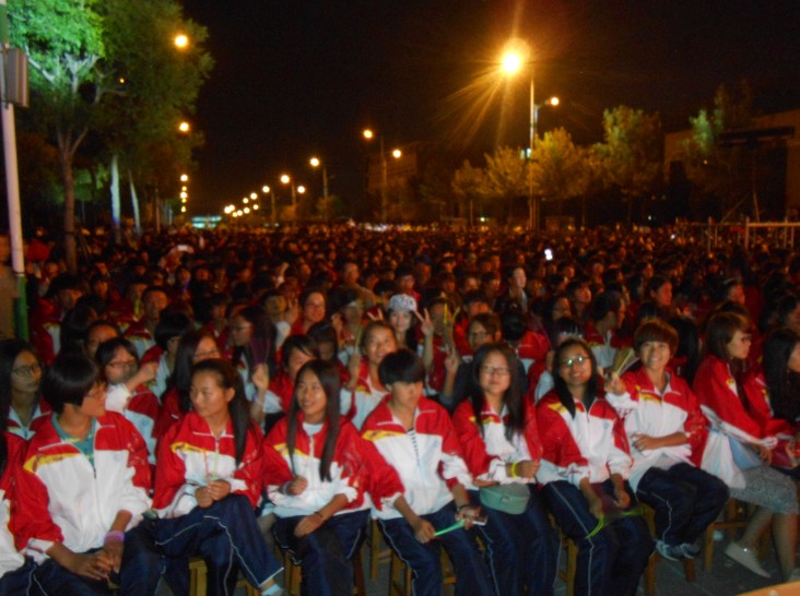 为欢迎我院2013级大一新生,融合我院师生情谊, 2013年9月5日晚上七点整,由我院团委主办的2013年度迎新生暨庆教师节大型联欢晚会在中心大道隆重举行,师生共聚一堂,欢迎2013级新生的到来,出席的领导有院长耿建敏、党委副书记杨新春、副院长窦中华、王永保、刘艳蔚等,以及驻烟各大媒体记者与全院12000多名师生共同观看了演出。
