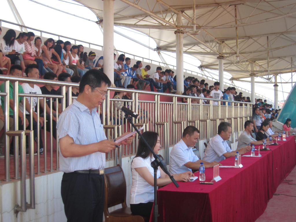(本报讯 记者刘校丹 李文燕 报道)我院2013级新生入学开学典礼于9月3日下午3点在体育场隆重举行。出席的领导有党委书记、院长耿建敏同志、副书记杨新春同志、副院长窦中华同志、副院长王永保同志、副院长刘艳蔚同志等,此外,人民日报、人人网驻烟台站代表及部分新生家长也出席并参加了典礼,此次典礼由副院长刘艳蔚主持。