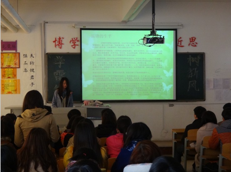 (本报讯记者 郝晓丹 报道)3月26日下午,我院开展了以“雷锋在身边”为主题的团课,开展此次团课的主要目的是“让同学们深刻感受到雷锋就在我们身边,动员每位同学都加入到学习雷锋精神的队伍中来”。记者跟随院团委秘书处组织部走访了一部分班级做深入了解。