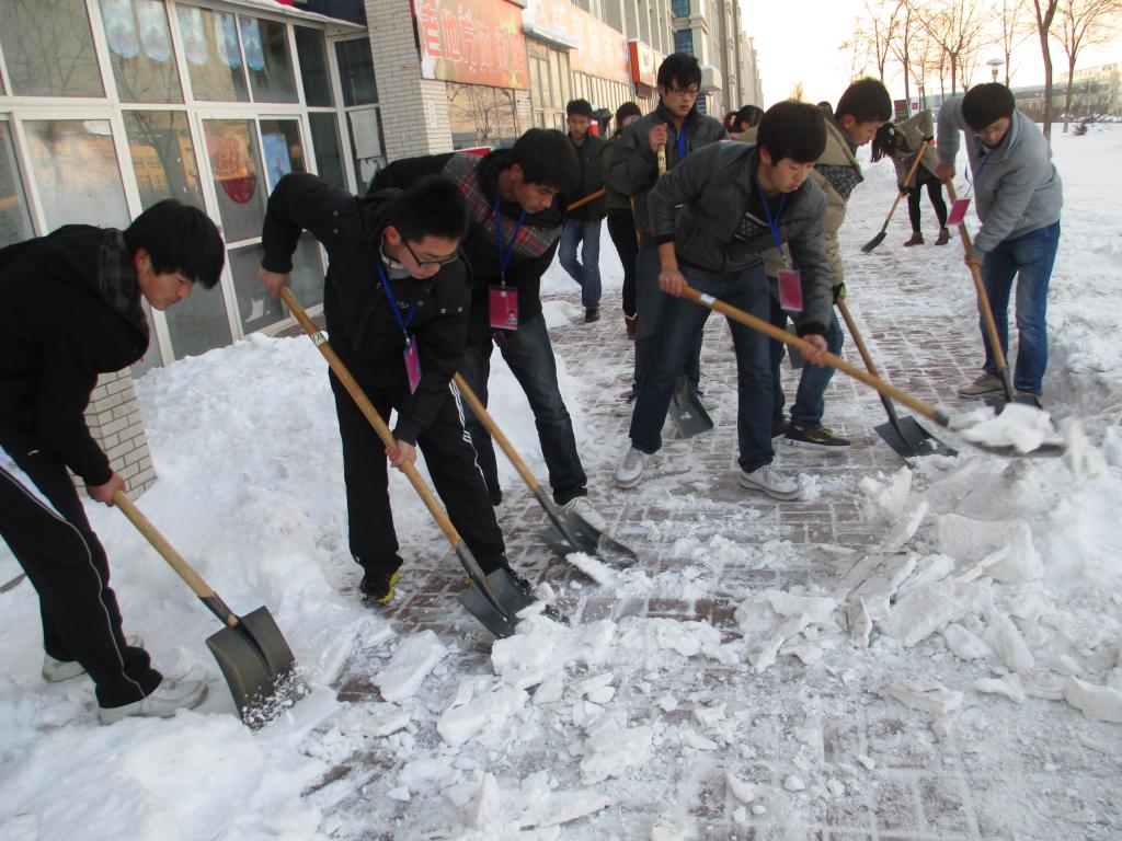 2013年1月4号,我院学生会、院团委秘书处及社团联合会三大组织在学生公寓区联合进行了本学期的最后一次大型扫雪活动。