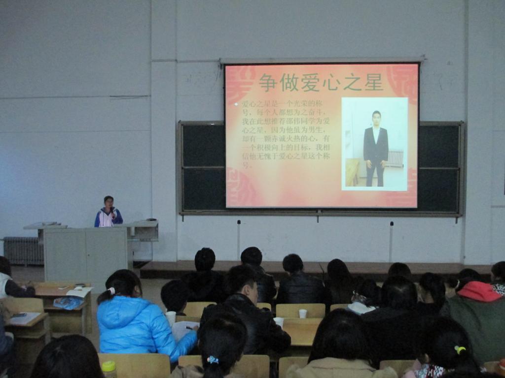 (本报讯 记者 王宁 报道)我院十大校园之星复赛于11月16日下午4时在2号教学楼1号阶梯教室隆重举行,出席本次十大校园之星复赛的有院团委秘书处秘书长刘伟、副秘书长丁宁、沈坛君,院团委秘书处各部部长以及各系团总支副书记,并应邀担任评委。
