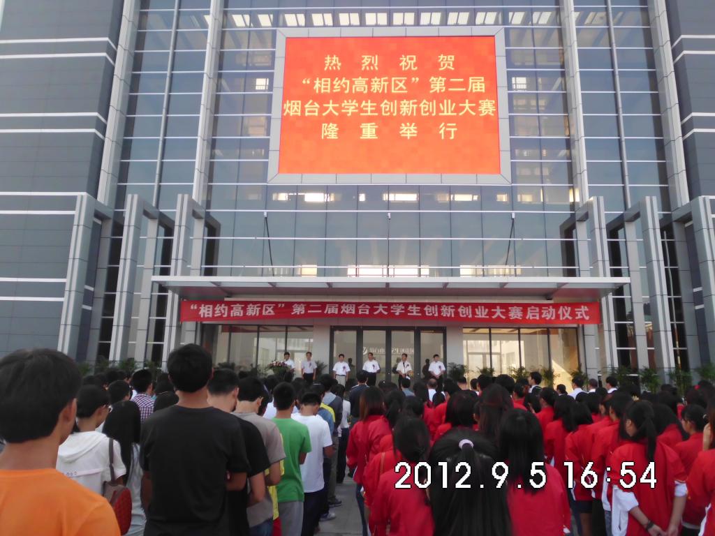 (本报讯 记者 董宝丹 报道) 为提升全市大学生创新意识、创新思维和创业精神,从驻烟高校中挖掘一批研究创新成果,发现一批富有创新精神、创业能力的高素质人才。2012年9月5日下午4点30分,“相约高新区”第二届烟台大学生创新创业大赛启动仪式在烟台大学生创业园隆重举行。此次活由烟台高新区管委、共青团烟台市委主办。烟台高新区管委负责人以及驻烟高校负责人出席了此次启动仪式。我院学生处处长、团委书记陶传蔚,团委曲军辉老师以及我院100余名学生代表参加了此次活动。