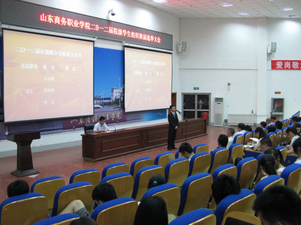 (本报讯 记者 李亚茹 报道)为给各大学生组织注入新的活力,进一步充实院级学生干部队伍,更好的完善学生组织的机制,2012年6月12日下午两点半我院学生会、团委秘书处、社团联合会三大学生组织在图书馆二楼报告厅举行了换届选举大会。我院学生处处长、团委书记陶传蔚,公寓管理中心主任王德学、学生自主管理中心主任毛美华、团委副书记时登华,团委老师曲军晖、张倩,食品系副主任王道波、建筑工程系副主任芦永刚以及各系辅导员出席了本次大会,此外,各班级学生代表也参加了本次活动。