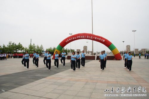 为加快艺体学院建设,深入推进校园全民健身活动的开展,增强教职工身体素质,培养教职工团结协作的集体主义精神,5月22日,学校工会和基础部联合举办了全校教职工第九套广播操比赛。学校领导张大好、耿建敏、杨新春、窦中华、王永宝观看了比赛。
