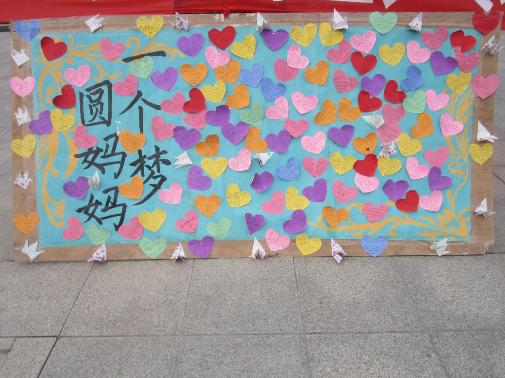 (本报讯 记者 李亚茹 报道)“谁言寸草心,报得三春晖”在母亲节来临之际,我院团委秘书处宣传部于2012年5月7日—5月13日在中心大道举办了“圆妈妈一个梦”母亲节感恩活动。取得良好效果。